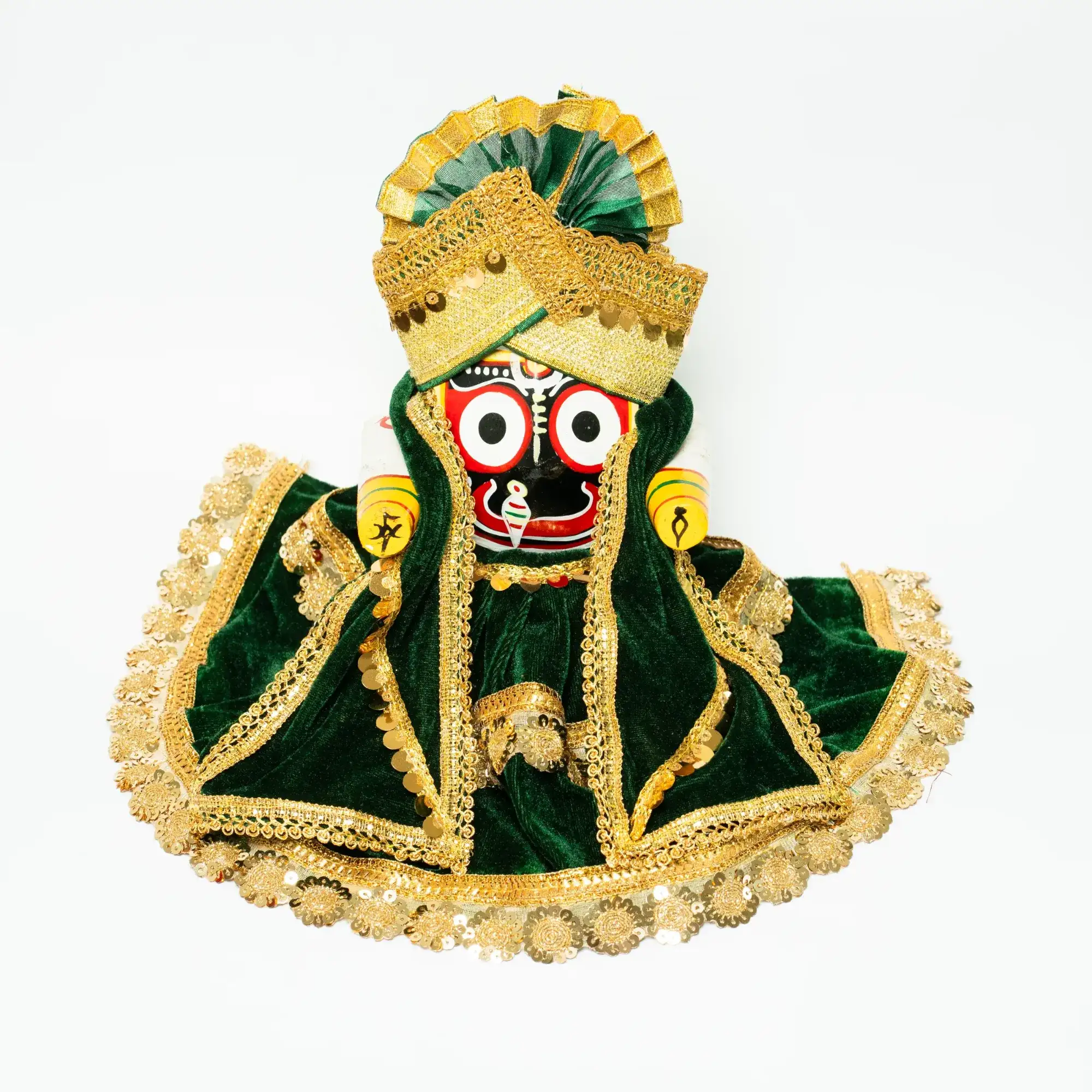Dark Green Velvet with Golden Zari Border 3pcs Set for Jagannath or Balaram or Subhadra