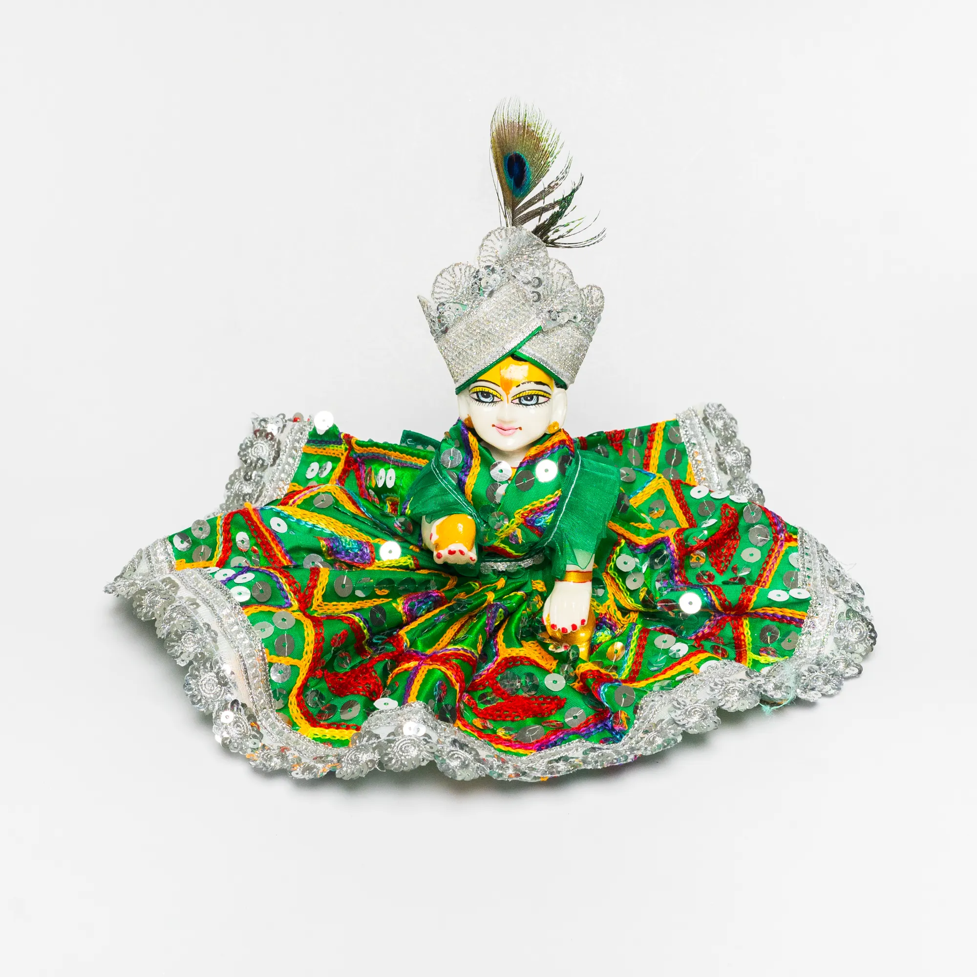Green Silk Embroidery Gujrati Work Dress 2pcs set for Laddoo Gopal